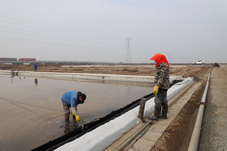 在日曬制鹽新河分公司零班生產(chǎn)現場(chǎng),該班全體員工正在班長(cháng)王興東的帶領(lǐng)下有條不紊的忙碌著(zhù),他們有的在對繩、有的在活碴、有的在破碴。據了解,由于近期夜間氣溫仍然較低,導致鹽池內的原鹽結塊現象較為嚴重,且對原鹽質(zhì)量有較大影響,因此原本于25日開(kāi)始的扒鹽工作現在已經(jīng)全部暫停,待氣溫進(jìn)一步升高再繼續扒鹽工作。