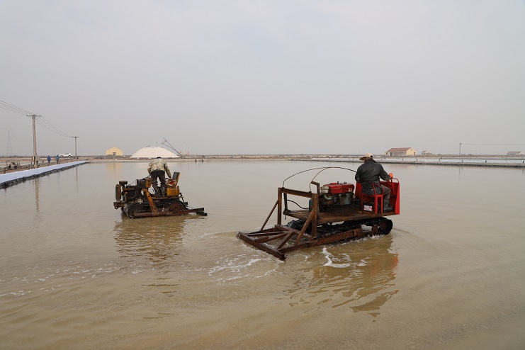 2月27日,我們在日曬制鹽公司生產(chǎn)一線(xiàn)看到,一大清早,工人們就開(kāi)始在鹽灘上忙碌著(zhù),為因氣溫較低而暫時(shí)停止的扒鹽工作做好各項開(kāi)機前的準備工作,確保扒鹽、生產(chǎn)兩不誤。