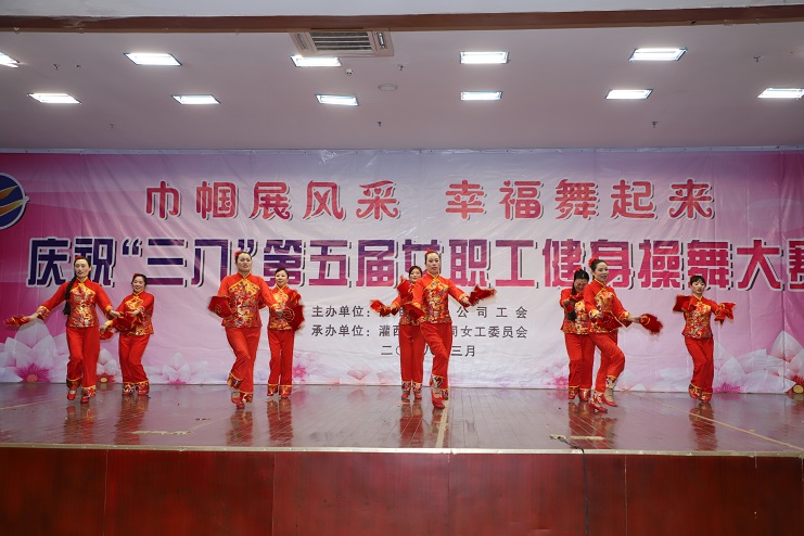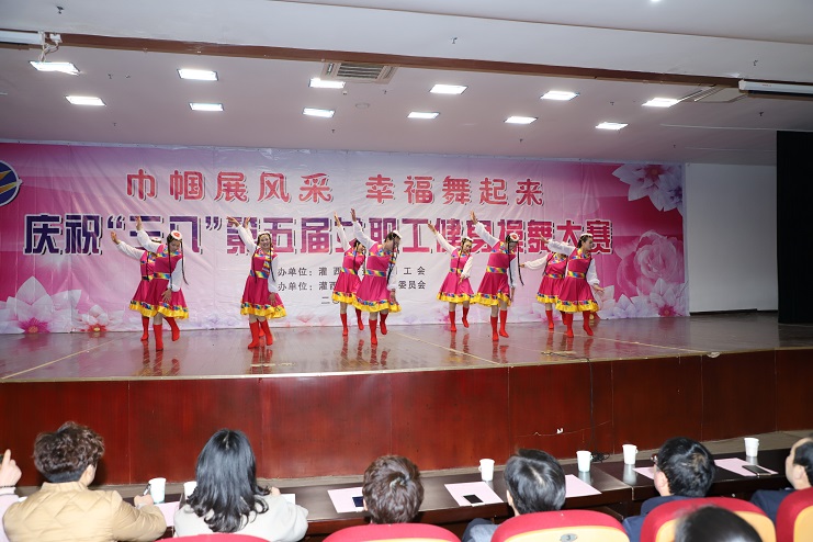 陽(yáng)春三月,人面桃花相映紅!春風(fēng)撲面,巾幗風(fēng)采傲蒼穹!3月8日下午,灌西投資公司第五屆“魅力灌西•舞動(dòng)幸福”廣場(chǎng)舞比賽在灌云縣臨港產(chǎn)業(yè)區管委會(huì )禮堂舉行,來(lái)自投資公司的9支代表隊與臨港產(chǎn)業(yè)區2支代表隊共11只隊伍參加角逐,廣大女工用婀娜的舞姿和精彩的表演慶祝國際“三八”婦女節的到來(lái),觀(guān)看比賽的職工群眾有400余人。