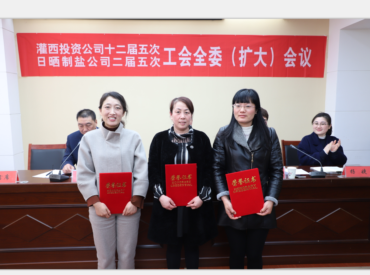 3月28日,灌西投資公司十二屆五次、日曬制鹽公司二屆五次工會(huì )全委(擴大)會(huì )議在機關(guān)四樓會(huì )議室召開(kāi),公司黨委書(shū)記、董事長(cháng)、總經(jīng)理李國文,紀委書(shū)記、工會(huì )主席王宏及各單位分會(huì )主席、女工主任參加會(huì )議,會(huì )議由公司工會(huì )副主席孫武善主持。