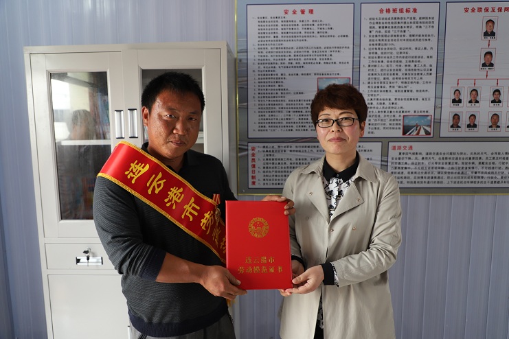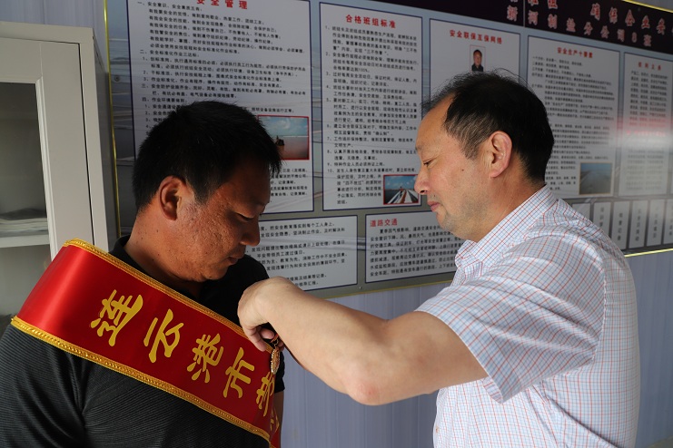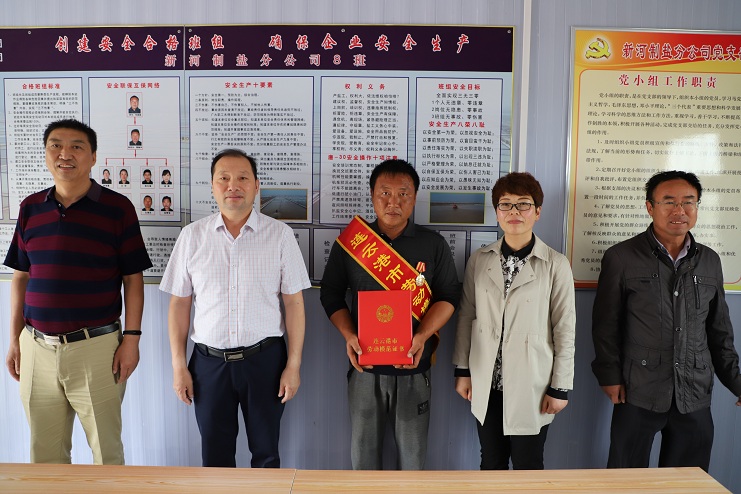 5月22日下午,公司董事長(cháng)、黨委書(shū)記李國文、紀委書(shū)記、工會(huì )主席王宏一行到新河制鹽分公司八班為獲得連云港市勞動(dòng)模范的祝星星綬帶佩章。