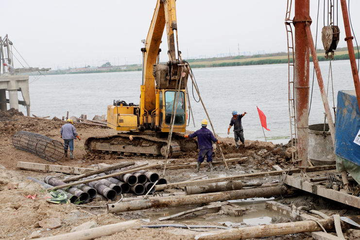 五灌河碼頭二期工程從5月16日施工以來(lái),已經(jīng)完成樁基24根,平整場(chǎng)地30%以上,在180米長(cháng)、20米寬的河岸邊,已經(jīng)完成了18000方土方工程量。工程項目組干部員工為了保障五灌河碼頭二期工程安全有序的在工期內完成碼頭建設,統一思想,分工協(xié)作,任務(wù)到人,搶進(jìn)度,保目標,激發(fā)廣大員工的積極性和主動(dòng)性,力爭二季度完成工程量的75%,確保碼頭下半年全面投入運營(yíng)。(張明建)