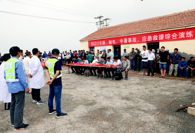 此次演練過(guò)程中,安全監管部李長(cháng)軍主持了這次演練活動(dòng),埒南制鹽分公司職工及管理人員參與其中,演練模擬現場(chǎng)有三個(gè):1、職工在灘頭塑池堰上突然中暑(重度)。2、職工在廩基小鹽化鹵調鹵中接觸老化線(xiàn)路接頭時(shí)不慎觸電(傷害較重)。3、職工在上班途中三輛電瓶車(chē)相撞(跌傷較重)。在救援過(guò)程中,大家各司其職,齊心協(xié)力,配合默契,有條不紊成功完成了此次演練活動(dòng)。通過(guò)這次應急演練,進(jìn)一步提高了公司員工應對緊急事件的自我保護和防衛能力,保證員工在發(fā)生突發(fā)事件時(shí),能熟練應對、有序救援,最大限度地減少事故帶來(lái)的損害,切實(shí)保護員工的安全。