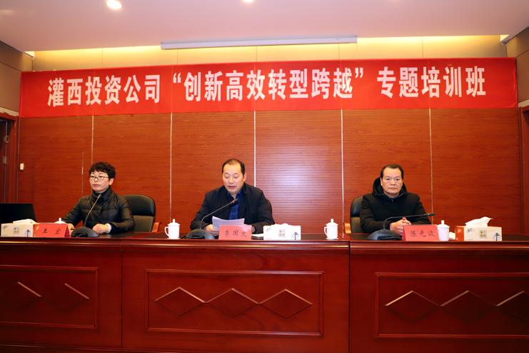 為提高干部綜合素質(zhì),加快推進(jìn)公司創(chuàng )新轉型發(fā)展。12月19日上午,灌西投資公司中層管理人員共60人前往灌云縣委黨校進(jìn)行為期兩天的培訓。黨委書(shū)記、董事長(cháng)、總經(jīng)理李國文、縣委黨校校長(cháng)陳光波出席開(kāi)班儀式并講話(huà)。