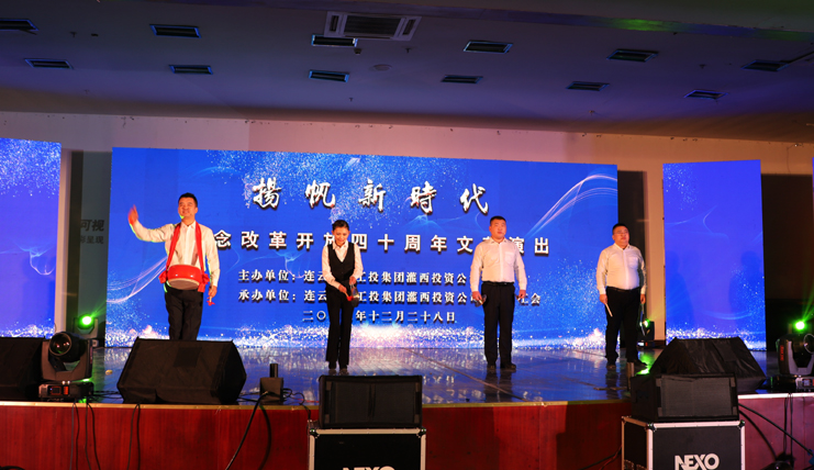 偉大變革,書(shū)寫(xiě)壯麗史詩(shī);永志不忘,奮進(jìn)復興征程。12月28日,灌西投資公司以“揚帆新時(shí)代”為主題的慶祝改革開(kāi)放40周年文藝匯演在灌云縣臨港產(chǎn)業(yè)管委會(huì )報告大廳上演。工投集團公司領(lǐng)導戴鴻鳴、汪群、劉承志等領(lǐng)導與職工群眾代表700余人共同欣賞了這臺振奮人心的視聽(tīng)盛宴。投資公司黨委書(shū)記、董事長(cháng)、總經(jīng)理李國文作了演出致辭。