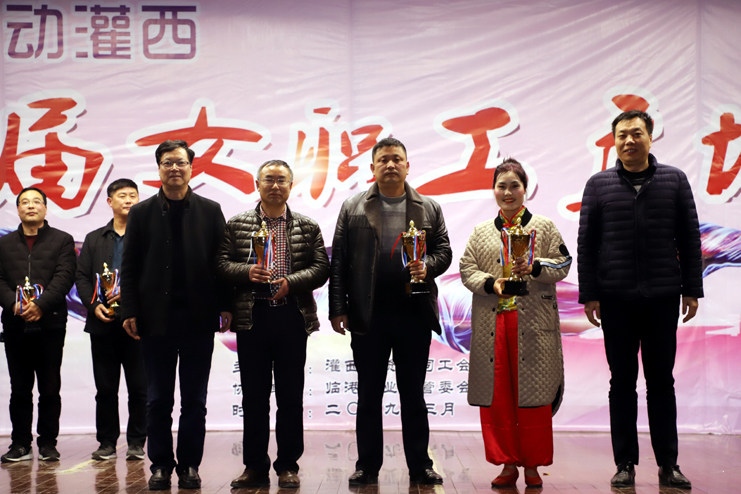 評委通過(guò)舞蹈編排、動(dòng)作難度、服飾、音樂(lè )效果等評分標準,對8支廣場(chǎng)舞舞蹈隊表演的節目進(jìn)行了打分,并評選出一、二、三等獎。灌西投資公司黨委書(shū)記、董事長(cháng)、總經(jīng)理李國文、副總經(jīng)理古浩光、許太冬、王順友、紀委書(shū)記、工會(huì )主席王宏、總經(jīng)理助理劉殿龍,西旺水產(chǎn)實(shí)業(yè)公司總經(jīng)理茆慶軍等領(lǐng)導分別為獲獎隊伍頒發(fā)了獎杯。