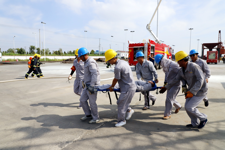此次演練模擬電器短路和起火事故開(kāi)展應急救援。碼頭現場(chǎng)吊機在操作中發(fā)生主電機電流過(guò)載,配電箱出現異常,吊機作業(yè)操作無(wú)法正常工作,主機發(fā)出報警,吊機剎車(chē)系統出現失靈,電器設備出現故障,繼而發(fā)生初期電火,報警信號發(fā)出后30秒內該區域內所有人員疏散完畢,并撥打119火災救援電話(huà),并迅速遏制火情,撲滅火災,有效保護在場(chǎng)人員人身安全及公司財產(chǎn)安全。整個(gè)演練過(guò)程,參演員工嚴格按照應急預案要求,積極配合,有序、迅速地完成疏散及滅火等演練任務(wù),人員及財產(chǎn)得到了有效保護,演練達到了預期效果。