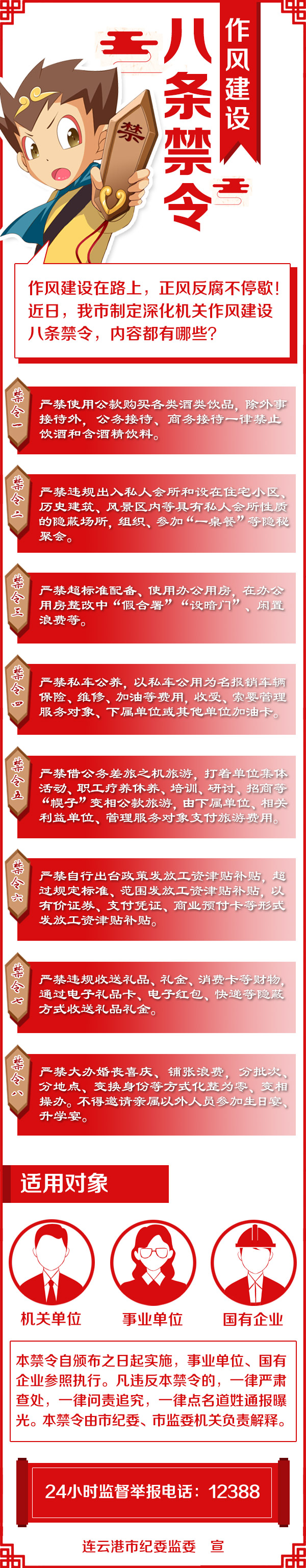 本禁令自頒布之日起實(shí)施,事業(yè)單位、國有企業(yè)參照執行。凡違反本禁令的,一律嚴肅查處,一律問(wèn)責追究,一律點(diǎn)名道姓通報曝光。本禁令由市紀委、市監委機關(guān)負責解釋。24小時(shí)監督舉報電話(huà):12388。