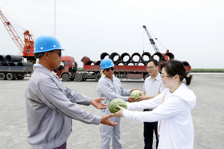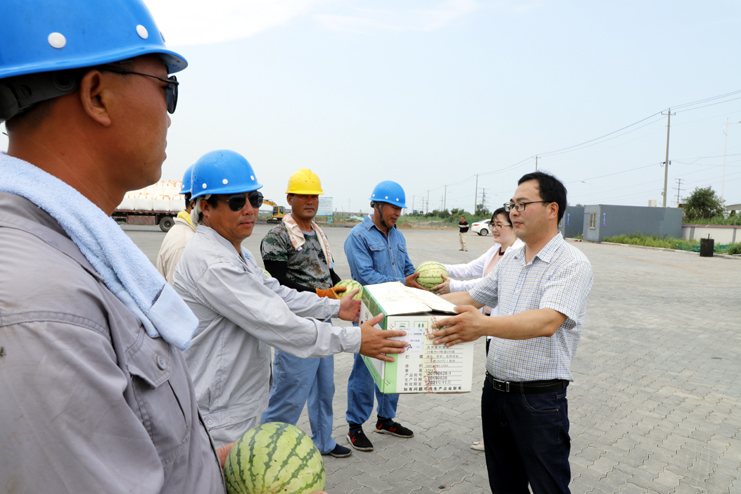 入伏以來(lái),氣溫持續攀升,五灌河碼頭裝卸工作也迎來(lái)了夏季高溫的“烤驗”。為做好高溫酷暑期間的防暑降溫工作,確保職工工作安全和身心健康,7月25日,灌西工會(huì )一行到宵洋五灌河碼頭為堅守在崗位上奮戰的碼頭工人送去關(guān)懷和問(wèn)候。 高溫籠罩下的碼頭暑氣蒸騰,灌西工會(huì )為碼頭工人送來(lái)了西瓜、白糖、綠豆、藥品等防暑降溫物品。并叮囑職工們要注意安全生產(chǎn),做好防暑降溫工作。(張明建)