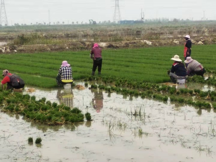 連日來(lái),工人們克服天氣炎熱等因素,搶時(shí)間趕進(jìn)度。在明威公司稻田里隨處可見(jiàn)一片繁忙景象:拔秧的,捆秧的,插秧的,她們按照勻、整、齊的標準,不一會(huì )兒,一排排秧苗整齊地立在了水田中,構成一幅美麗的田園畫(huà)卷。