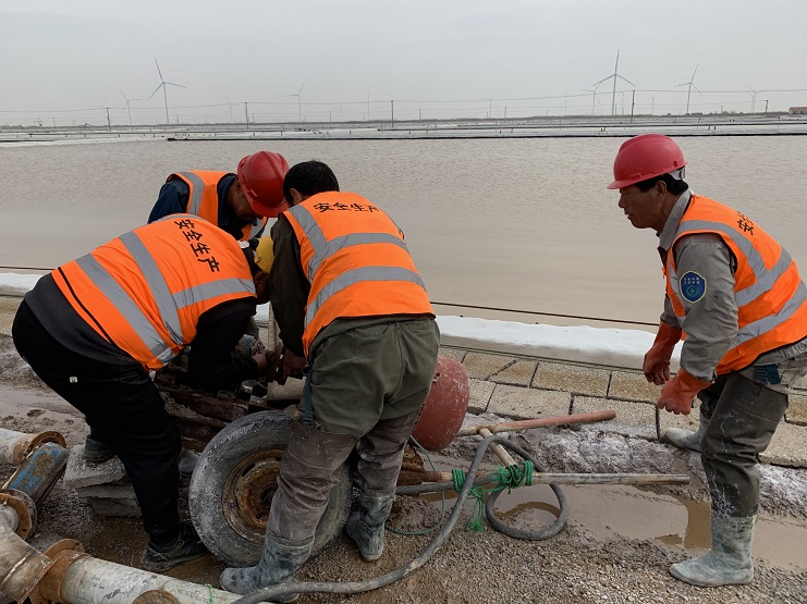 首先,從扒鹽現場(chǎng)的交接班著(zhù)手,要求交接班前的第一項工作就是填好交接班表,要時(shí)刻把安全放在第一位,無(wú)論做什么,時(shí)刻謹記著(zhù)安全。其次,每次統機前,參扒人員牢記扒鹽的注意事項,統一分工后各司其職有序開(kāi)展。最后,從扒鹽的設備著(zhù)手,對配電箱、大泵、集鹽機進(jìn)行一次隱患排查,對易損壞處以及危險源再一次進(jìn)行告知。