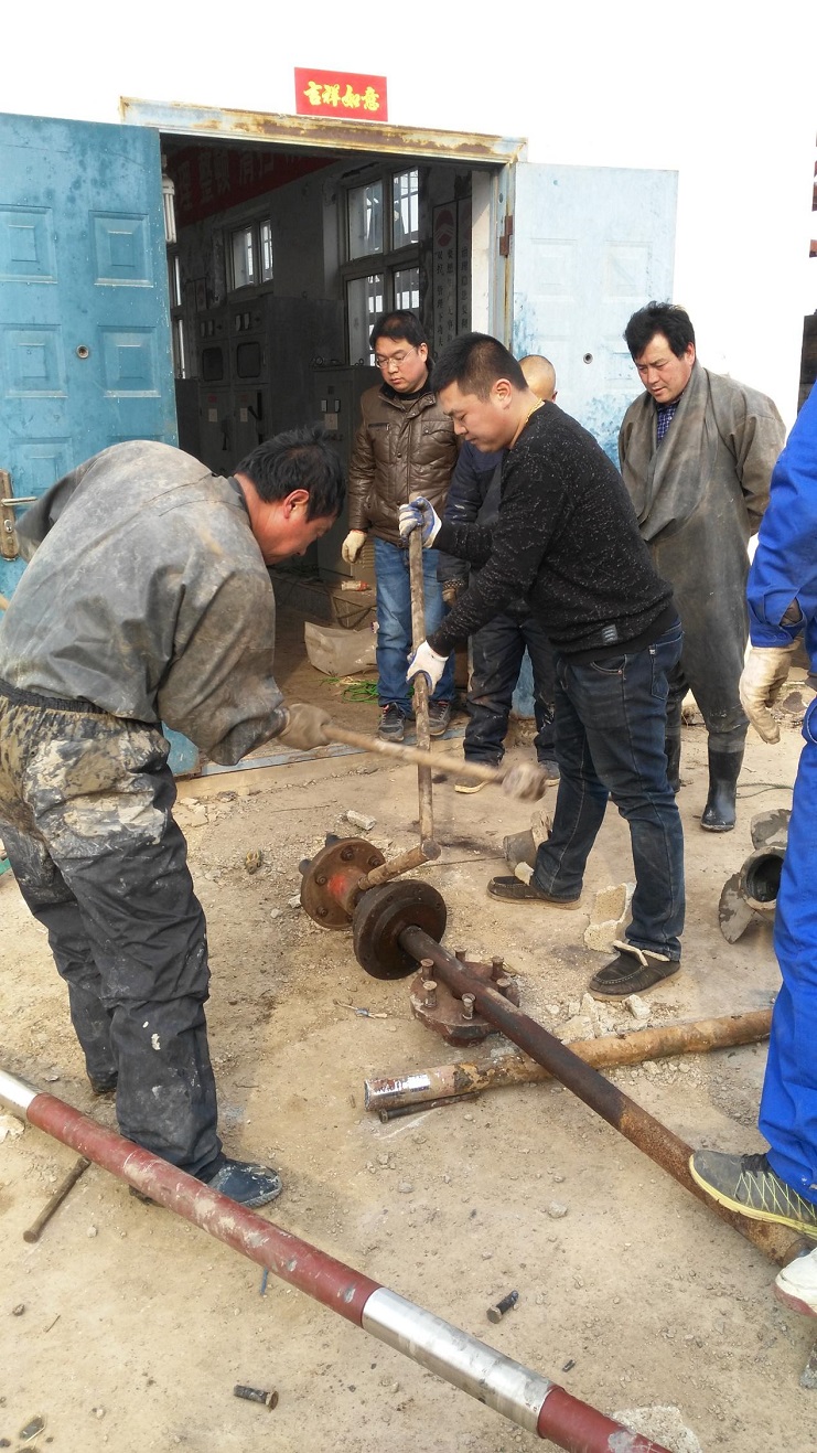 為確保3月底西旺公司淡水供給,從3月中旬開(kāi)始,機電服務(wù)公司組織人力,對4臺55KW水泵進(jìn)行大修。在市勞模王緒華帶領(lǐng)下,機修人員范成軍、黨員楊軍、蘇輝等不怕臟和累,舊配件拆除、新配件組裝,每個(gè)環(huán)節都能做到安全、認真、仔細。經(jīng)過(guò)10天多搶修,4臺機泵大修結束,為正常開(kāi)機揚水提供了保障。(圖為大修現場(chǎng))
