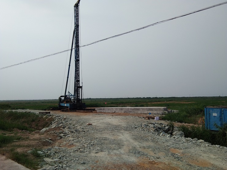 坐落在西旺水產(chǎn)公司農田區域內的其中的8個(gè)風(fēng)力發(fā)電機建設項目,繼續協(xié)調、征地、便道鋪建完工后,目前進(jìn)入樁基施工階段。圖為樁基施工現場(chǎng)(西旺宣)