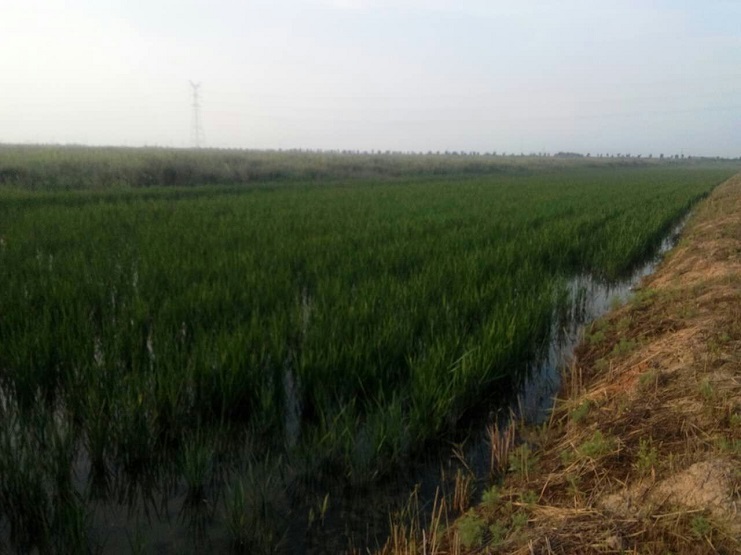 實(shí)業(yè)公司農業(yè)分公司嚴格做好水稻田間管理工作。針對季節氣候的變化,及時(shí)組織人員對埒南大阜二圩片區試種稻田進(jìn)行除草、施肥、灑藥,為水稻營(yíng)造良好的生長(cháng)環(huán)境。(實(shí)業(yè)公司)