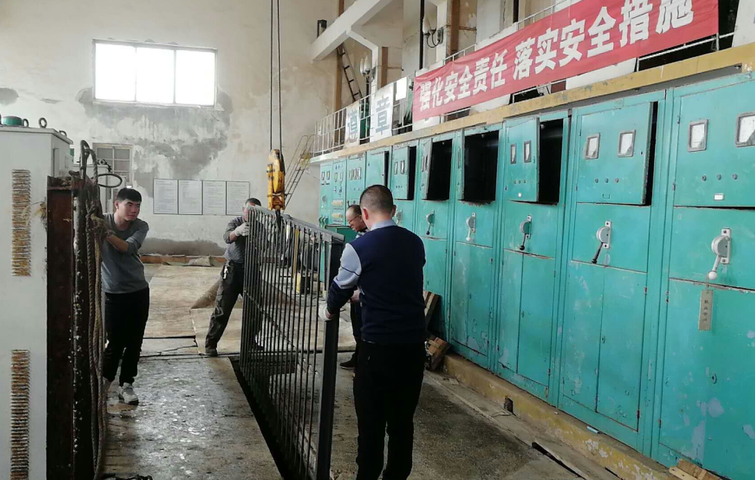 3月14日上午,機電服務(wù)公司配合投資公司相關(guān)工作人員,對海堤閘站機電設備進(jìn)行了認真安全排查。其中六圩閘站攔浮柵1片,因使用年久,已嚴重損壞,時(shí)值海水供給高峰期,為保障機泵設備安全運行,需及時(shí)更新。為此該公司能及時(shí)、主動(dòng)向分管領(lǐng)導請示,急事急辦。編制預算、購買(mǎi)材料、安排人員等有條不紊。從下午2點(diǎn)開(kāi)始操作,2個(gè)多小時(shí)完成了更新工作,既排除了隱患,又為晚上正常開(kāi)機揚水,提供了保障。(機電服務(wù)公司)