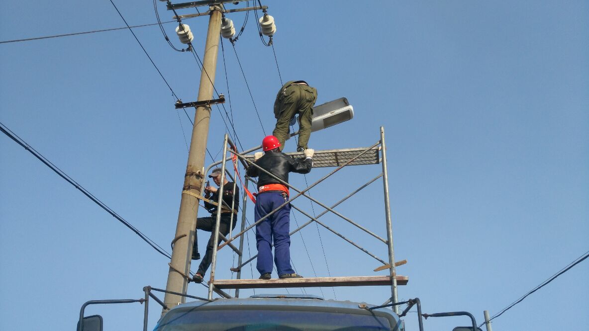 因受大風(fēng)影響,日曬制鹽公司路燈部分支架被吹變向、燈蓋被吹開(kāi),存在安全隱患。為不影響職工日常行走,消除隱患,4月17日下午,該公司認真組織專(zhuān)業(yè)人員對路燈進(jìn)行維修,在維修現場(chǎng),安全人員現場(chǎng)指揮,操作人員能?chē)栏駡绦邪踩僮饕幊?,?jīng)過(guò)2小時(shí),共修理8盞,接斷線(xiàn)6盞,消除了隱患,為職工上下班提供了保障。(機電)