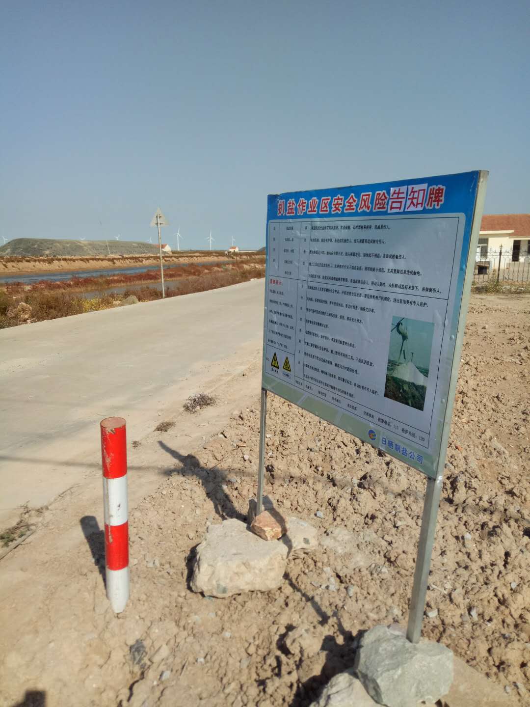 市、縣安監局領(lǐng)導在對新河制鹽分公司生產(chǎn)場(chǎng)所進(jìn)行安全督查時(shí)指出扒鹽現場(chǎng)缺乏閑人免進(jìn)的標志牌、大廩沒(méi)有禁止攀爬,防摔傷標志牌等,10月29日上午,新河制鹽分公司協(xié)同投資公司安全部門(mén)進(jìn)行了整改,首先在道路交通路口樹(shù)立扒鹽作業(yè)區安全風(fēng)險告之牌,在扒鹽現場(chǎng)樹(shù)立扒鹽作業(yè)區安全風(fēng)險辨識牌、當心觸電、當心機械傷人、廩高危險,禁止攀爬標志牌,其次在九班變壓器用圍欄,張貼有電危險、禁止攀爬標志,進(jìn)一步提高了職工的安全系數,增強了員工安全操作技能,為企業(yè)下一步的安全生產(chǎn)奠定了堅定的基礎。(江德前)