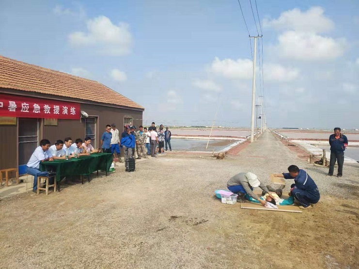 為了貫徹落實(shí)灌西投資公司“安全生產(chǎn)月”活動(dòng),7月9號在埒南制鹽分公司八班舉行應急演練,學(xué)習中暑急救等安全救援知識。明威公司分管安全領(lǐng)導徐永年與安全員胡繼軍參與演練學(xué)習。(明威 ?,?