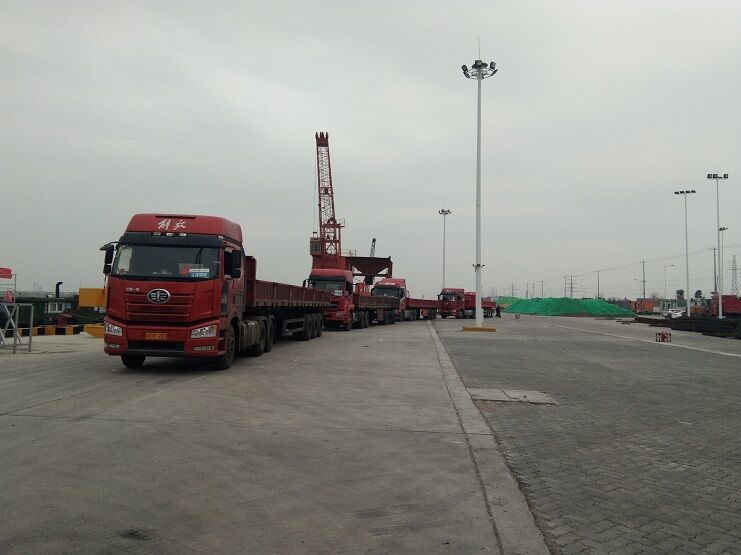 隨著(zhù)江蘇省境內復產(chǎn)復工的開(kāi)始,省內道路交通逐漸恢復,宵洋物流公司抓住戰機,積極發(fā)展客戶(hù)。裝載著(zhù)彈簧扁鋼特種鋼材的車(chē)輛絡(luò )繹不絕地駛入碼頭,直接裝船。這將大幅度降低碼頭倉儲壓力,提高碼頭的運轉能力。這也是碼頭首次鋼材進(jìn)行船運,打破以往車(chē)輛運送貨物的局限性,大大增加碼頭的吞吐量。