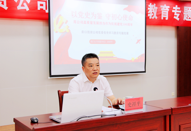 黨的百年華誕來(lái)臨之際,6月30日上午,青口公司黨委書(shū)記史祥平以《以黨史為鑒 守初心使命 用公司高質(zhì)量發(fā)展擔當作為慶祝建黨100周年》為題,為公司黨員干部上了一堂生動(dòng)的黨史學(xué)習教育專(zhuān)題黨課。集團公司黨委黨史學(xué)習教育第一指導組組長(cháng)、集團紀委副書(shū)記王建松應邀參加會(huì )議。