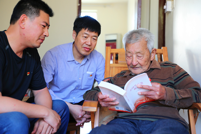 “送學(xué)上門(mén)”不掉隊。公司黨委開(kāi)展黨史學(xué)習教育送學(xué)活動(dòng),為離休老干部送出一份特殊的“紅色禮物”:一枚黨徽和一本《中國共產(chǎn)黨簡(jiǎn)史》,現場(chǎng)為離休干部佩戴黨徽,誦讀一篇章節選段,打通了黨史學(xué)習教育的最后一公里。