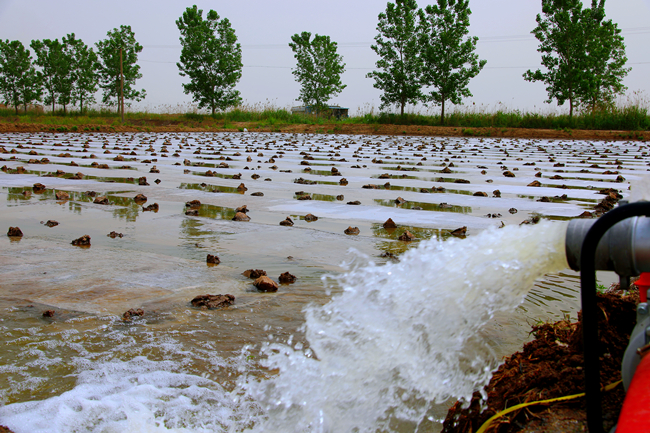 ▲塑盤(pán)育秧后進(jìn)入秧苗管理期,條田管理工正引水灌溉,全力做好保苗護苗工作,為下一步序時(shí)推進(jìn)插秧工作打下基礎。