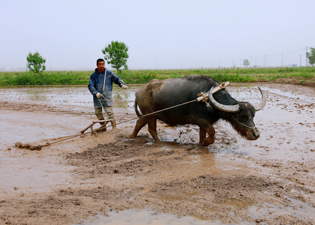 ▲不用揚鞭自?shī)^蹄,深耕細作促生產(chǎn)。田間還會(huì )遇見(jiàn)牛蹄疾步穩、耕地拖平難得一見(jiàn)的傳統生產(chǎn)場(chǎng)面,對于小部分高低不平的田塊用牛找平較為方便,保證了在春耕各環(huán)節上做到精益求精。(仲偉彬、劉 楊)
