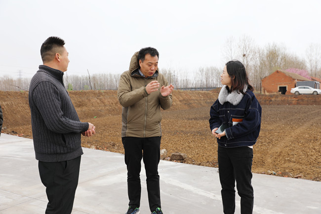 4月2日上午,冒著(zhù)淅瀝瀝的春雨,青口公司副總經(jīng)理許太冬帶領(lǐng)樊家選、趙華兵兩位技術(shù)指導小組成員,來(lái)到海頭鎮龍河村新復墾的240畝土地現場(chǎng),與結對聯(lián)建的龍河村村委成員熱切交流,為新復墾的土地發(fā)展規劃出謀劃策。