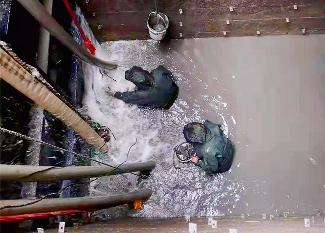 連日來(lái),深度4米的泵池底一批又一批工人冒雨在泥漿中接續奮戰。