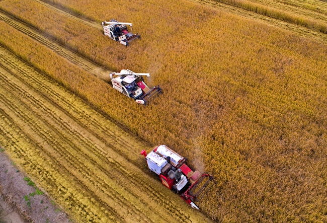 ? ?10月28日,青口投資公司的萬(wàn)畝鹽堿地標準化農田里,有機水稻示范點(diǎn)率先開(kāi)鐮收割,現代化收割機正開(kāi)足馬力進(jìn)行水稻收割作業(yè),到處一派繁忙喜悅的秋收景象。