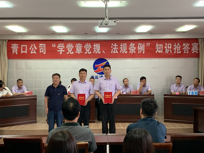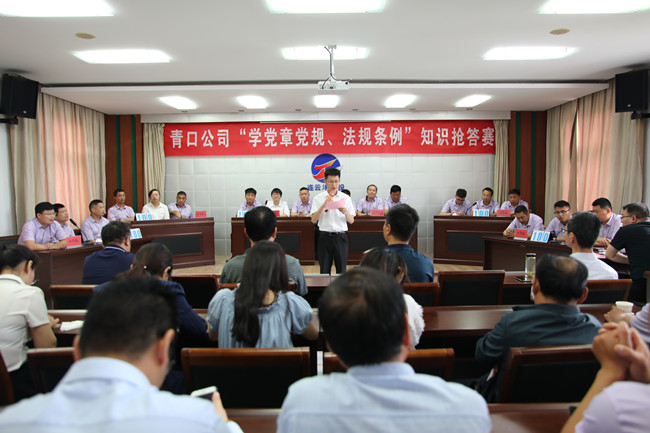 為推動(dòng)黨員干部進(jìn)一步掌握基本標準,增強黨的意識、黨員意識、紀律意識,更好地堅守初心、踐行使命,6月23日上午,青口公司舉辦“學(xué)黨章黨規、法規條例”知識搶答賽活動(dòng)。來(lái)自公司8個(gè)支部的24名選手參加了比賽。公司黨委班子成員出席了活動(dòng)。機關(guān)全體管理人員、各單位黨政工負責人到場(chǎng)觀(guān)看。