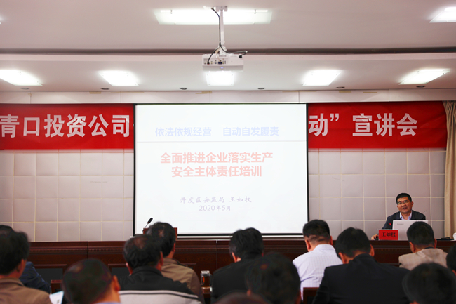? 為進(jìn)一步強化企業(yè)落實(shí)安全生產(chǎn)主體責任意識,推動(dòng)企業(yè)深入學(xué)習貫徹《企業(yè)落實(shí)安全生產(chǎn)主體責任重點(diǎn)事項清單》,5月14日下午,青口投資公司組織召開(kāi)安全生產(chǎn)“春風(fēng)行動(dòng)”宣講會(huì )。公司領(lǐng)導班子成員、安委會(huì )成員、各單位黨政工負責人、安全管理人員和機關(guān)全體管理人員參加,副總經(jīng)理楊守明主持。
