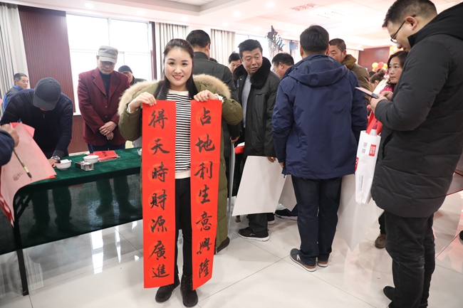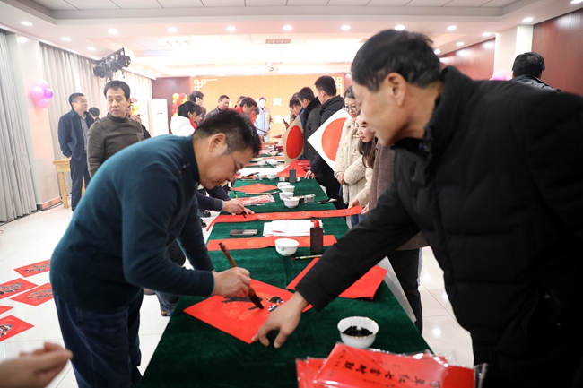 春節前夕,喜氣洋洋,為了營(yíng)造祥和歡樂(lè )的節日氛圍,弘揚中國傳統文化,公司邀請連云港市簡(jiǎn)帛書(shū)法協(xié)會(huì )的老師們來(lái)到青口公司,義務(wù)為民寫(xiě)春聯(lián),送祝福。