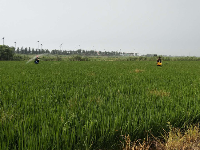時(shí)值立秋、暴雨初晴,正是水稻孕穗旺季,大新農場(chǎng)條田工抓住短暫晴天迅速施撒穗肥。由于近期光照少,陰雨較多,為穩定糧食產(chǎn)量,爭創(chuàng )畝產(chǎn)新高,大新農場(chǎng)結合農技員意見(jiàn),選用復合肥+尿素作為拔節孕穗期最后穗肥施撒。(楊杰)