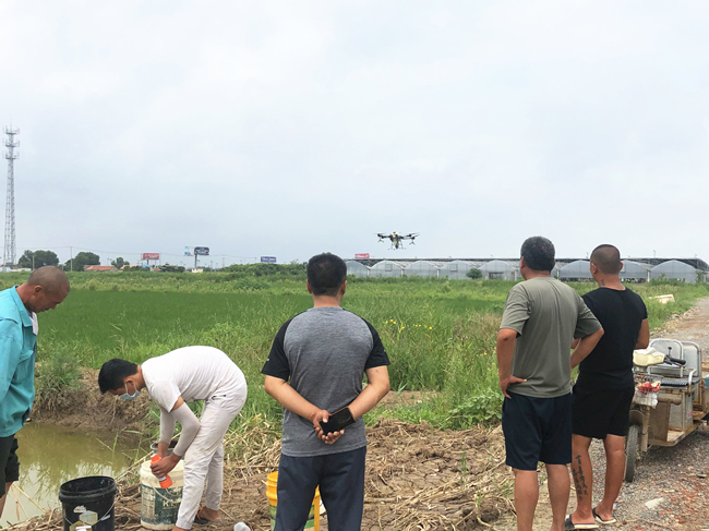 據生態(tài)種養中心嚴鑫介紹,現在正值多雨高濕天氣,水稻易發(fā)稻瘟病、稿飛虱、稻縱卷葉螟等病蟲(chóng)害,為了做好水稻的病蟲(chóng)害高效防治及除草工作,需要用無(wú)人機在稻地進(jìn)行打藥作業(yè)。
