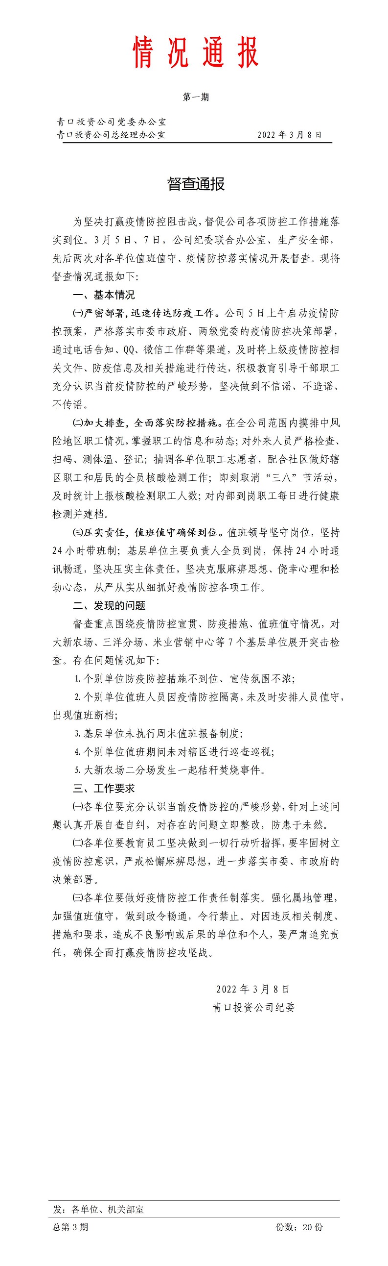 情況通報1期 疫情防控落實(shí)情況的督查通報